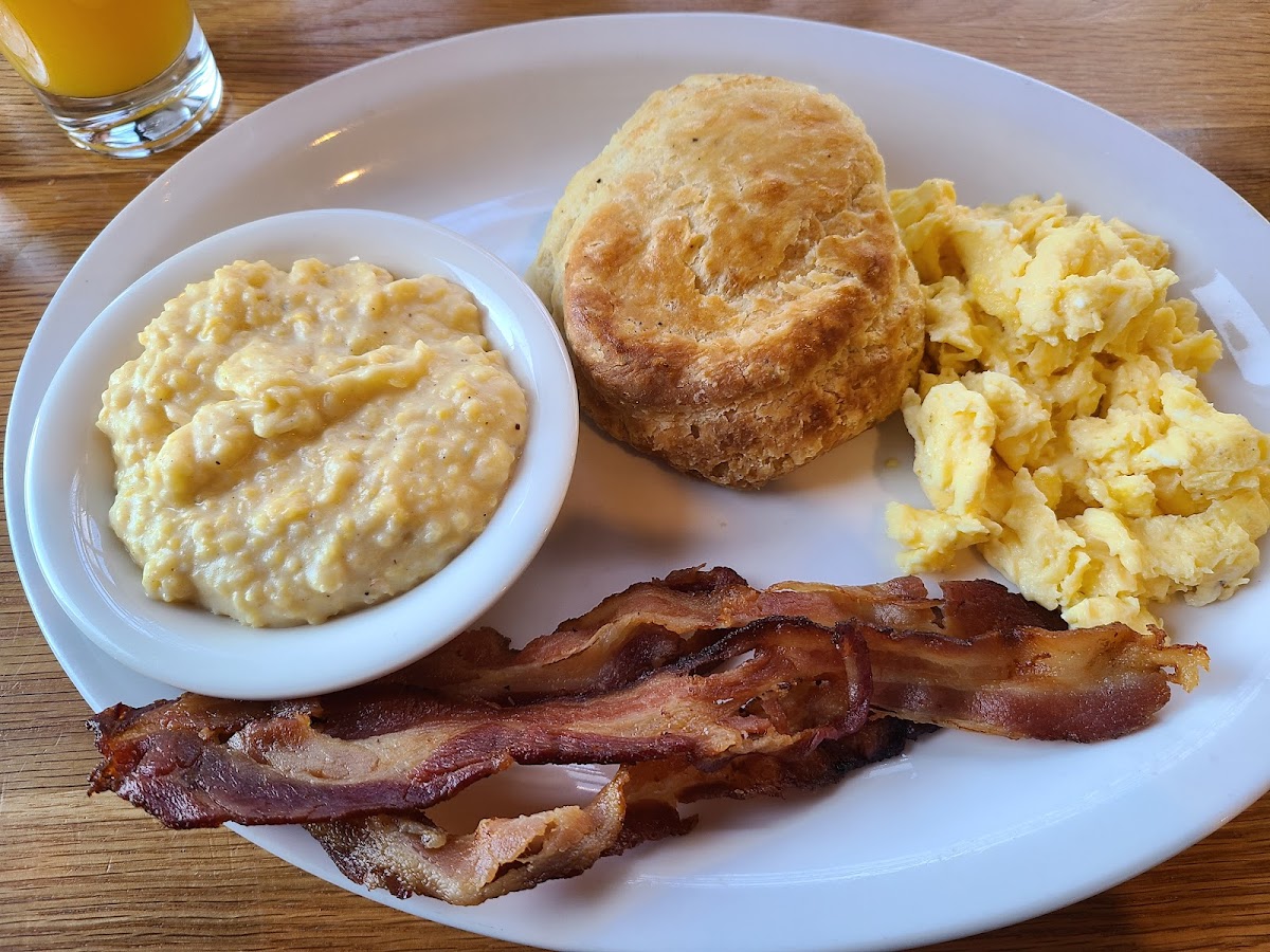 Great biscuits and coffee! Tried the oyster scramble and was well seasoned with a nice amount of heat. Diverse menu would definitely try again if one is around.